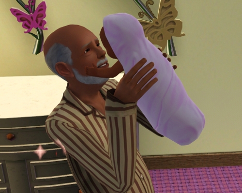 | David cheerfully plays with his granddaughter, Hope, before running off to work. |