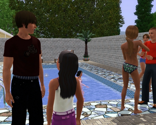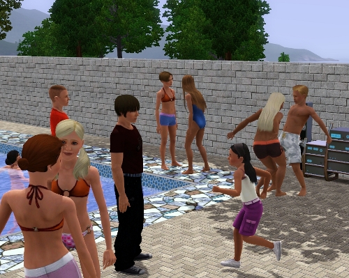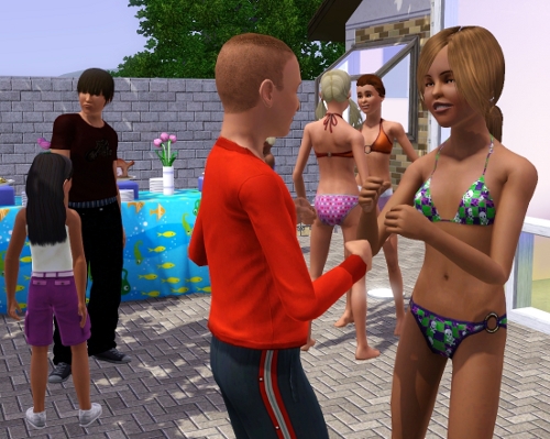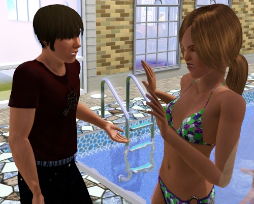 | Michael awards Hope a sideways smile upon seeing her. But his eyes seem glued to something (or somebody) else. Following his line of sight, she sees her Aunt Mary, who had changed into her bikini for the pool party. It is only after Mary shuts him down with a few choice words, that he pays Hope any attention. He is mean to her at first, calling her a dumb kid and suggesting that she do something useful, like get him a drink. She attributes his harsh words to his hurt feelings by way of Mary’s rather abrasive dismissal. She hates to see him angry, and desperately wants to repair their friendship. So she fetches his drink and they settle back down into a somewhat normal conversation. |