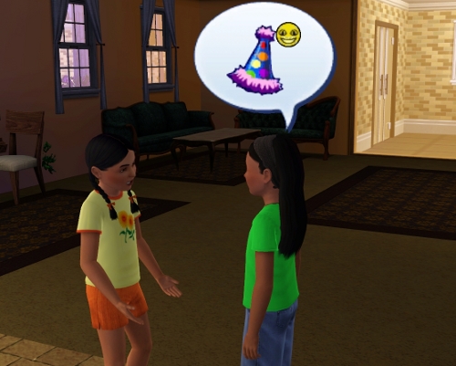 | Hope squeals with excitement when she sees Michael arriving at the party. She almost fails to recognise him at first. He had evidently celebrated his own birthday. Hope feels somewhat let down that she was not invited to the party, but does not let it dissuade her from going to greet him. Their relationship really has not been the same since the evening Michael was supposed to stay for a sleepover. |