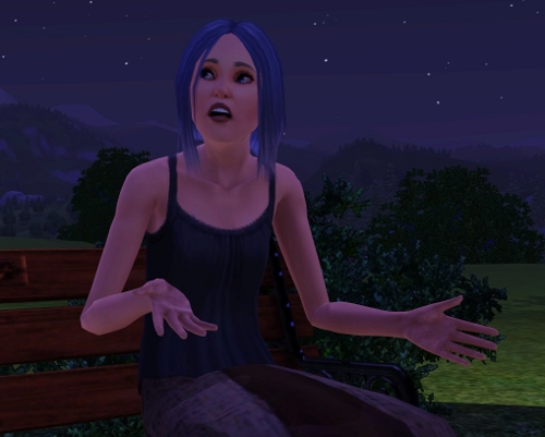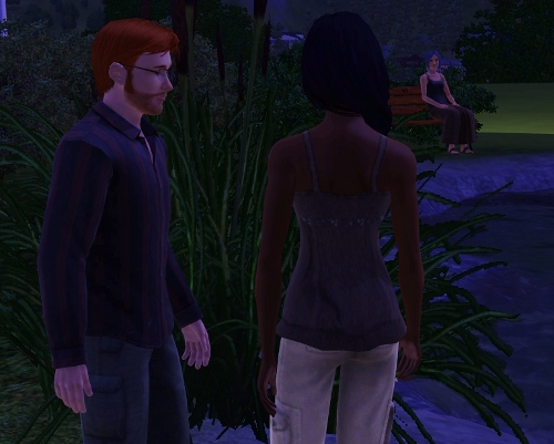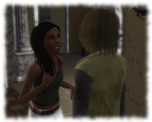 Thanks! The pseudo-science is a bit far-fetched, but hey… this is the Sims! Yes, it was Khaliq in the last shot. I wonder how much he overheard? 😉
