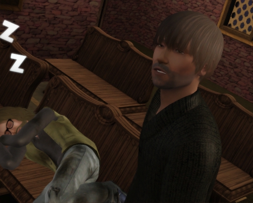 Doc appears as a sim who is extended far beyond the threshold of exhaustion. Gerard picks out an unoccupied pew for him to rest on. Before he can ask the first question about his presence here, and whether these new memories are mutual, Doc’s breathing settles to a quiet snore.