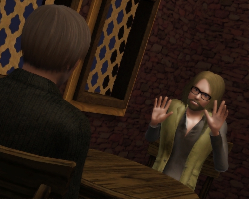 The answer comes much quicker than Gerard had expected. Doc leans over the table and whispers to Gerard with deadly seriousness. He tells the pastor that he knows his family is in danger, and he will do anything to “save” them. But he cannot do it alone. He needs help from another sim who has been where he has been; and remembers details he may have forgotten.