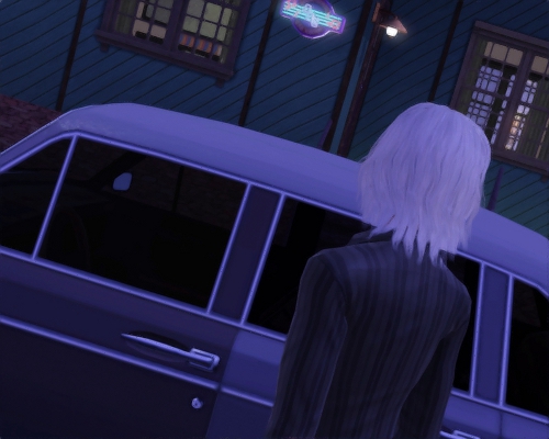 The sound of a key tapping on the curtained window wakes him up some time that night. Doc groans and stumbles to the window to find the source of the noise. He sees the waitress smiling sweetly at him through the window, pointing to the door. Doc sighs sleepily opens the door, letting her in. After a brief and very uncomfortable silence, she asks sheepishly again if he wants some company. Still half asleep, Doc shakes his head, thanking her for the flattery. He tells her that his wife is missing, and that he has come from France to look for her in town called Sunset Valley. But he quickly adds that if he were not already committed, he would not think twice about her invitation.
