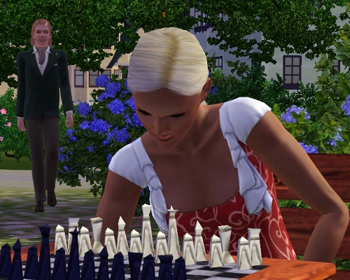 Amber smiles but does not turn from the chess table. She speaks out toward her chess pieces when she assumes he is some fifty feet away, announcing that she has decided to accept his job offer. She turns to find him smiling, almost exactly fifty feet away. No longer masking his footfalls, Brand occupies the chair across from her and compliments her senses; adding that he was wise to not underestimate her ability as others have.