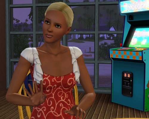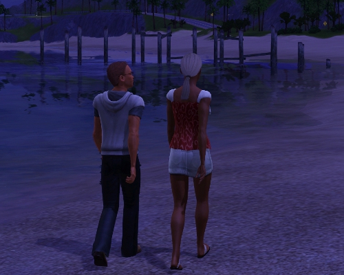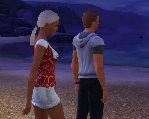 Pondering this curious new facet of her friendship with Wendell, she arrives at the beachfront bar. She finds him sitting alone, sipping on a drink. She greets him with a friendly hug apologizes for the short notice. Now distracted from her earlier train of thought, she gets swept away with a new influx of creative energy. Wendell listens intently, as he always does, and keeps the conversation carefully on track when she does finally begin to stray toward his social life.