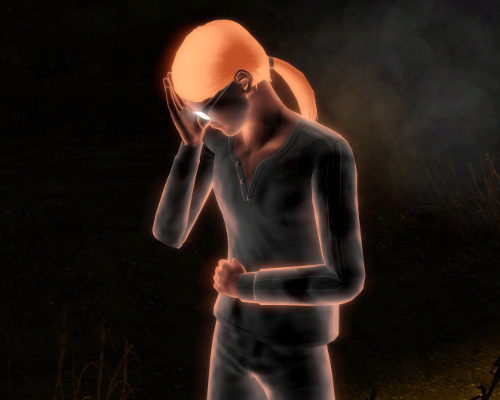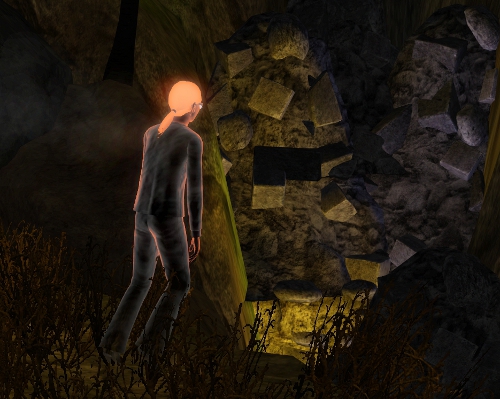 | The raw emotion that accompanies the witness of a doomed spirit, leaves Luke feeling bleak and hopeless, and unable to speak. Reid’s voice has the sound of corroded and rusted metal grinding in Luke’s mind. He speaks as would any sim facing his damnation; devoid of emotion, unsteady, and oddly contrite. He tells Luke that there is little time remaining. But there is still much to accomplish. Luke freezes in place when Reid begins to move toward the fissure and motions him to follow. |