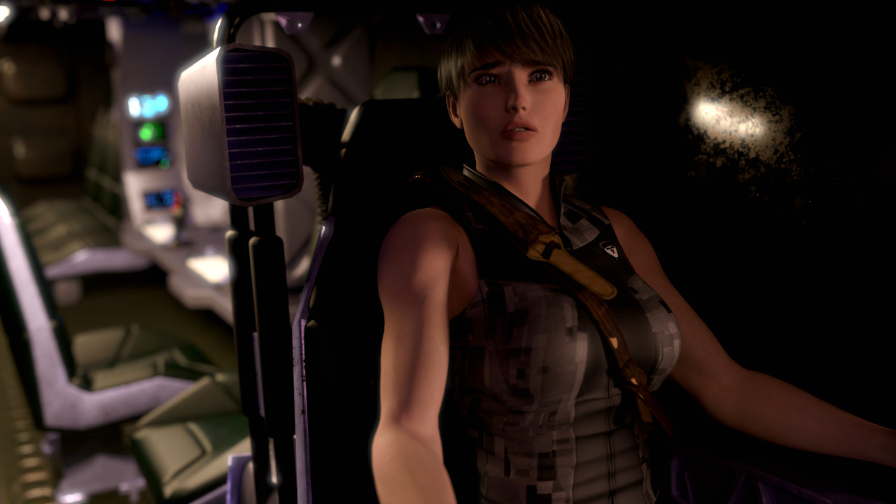Cedar operates controls that will place the vehicle into a self-charging state. Doing so will render the machine inoperable until it is either it is fuelled to capacity or interrupted by manual intervention. The risk of draining the vehicle while they are lost outweighs any danger posed by remaining here until morning, despite the lurking unknown thing that is undoubtedly still nearby. Lights dim to nothing as the machine enters its regenerative mode. Small vents open at various locations around the hull, allowing sounds from the dense wilderness to creep into the cabin. A deep, calm, and masculine voice emerges from the rear of the cabin. Activating a small torch for light, Cedar proceeds to climb out of the pilot’s seat and quietly approach him. He is sitting upright but favoring his right side.