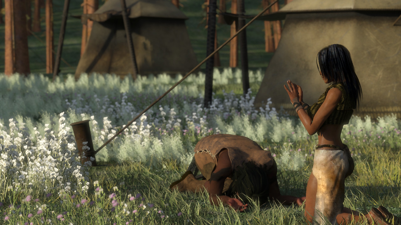 It is an ancient custom as old as the nomads themselves. Young women celebrating the Rite of Fertility paint their bodies with colorful pigments and dress their hair with flowers and jewelry. They emerge together from a wikiup wearing delicate, ashen gowns made from flax and down. Men seeking to be bonded then prostrate themselves on the ground in front of their desired mate. Each woman affirms her selection from among those lying prone before her. Being selected is considered an honor. Rejection becomes a lasting stigma carried by the men who endure it.