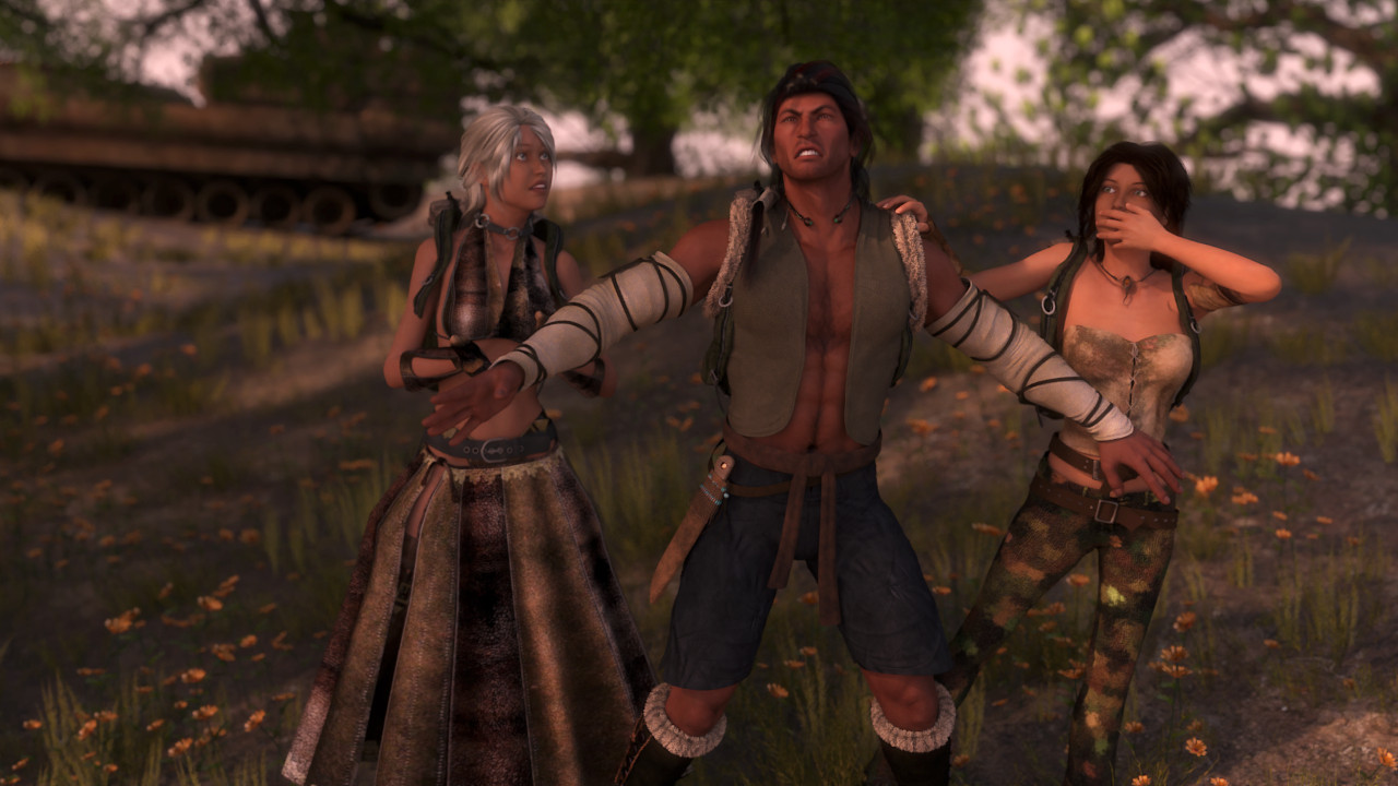 The camp is a flurry of activity as residents work to transform their abode into a traveling caravan. Partially deconstructed wikiups litter the grounds as the tribe loads its gear onto makeshift wagons fashioned from old-world salvage. This location has been favorable and easily defended against predators. The tribe may very well return here one day. But transience is integral to the nomadic people’s culture, and many in the tribe are happy for the change. Rihas can be counted among those who would rather be on the move than sedentary.