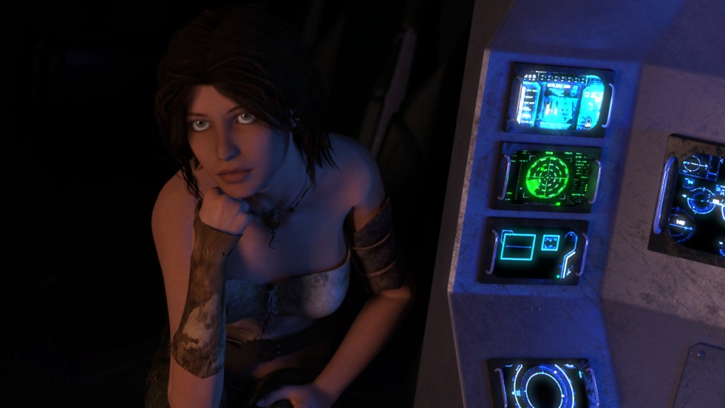 Then, after a moment, she continues, “I see the vehicle over there. We should inspect it and move it from this place. It will provide a safer and faster return trip out of the Graves. Do you agree, scout?”