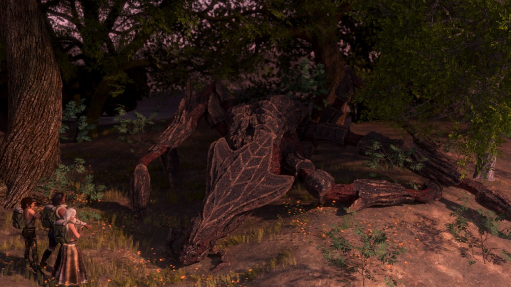 Remains belonging to perhaps a hundred large insects, including that of a giant predator with similar shape and anatomy, lay broken and in various stages of dismemberment, strewn across a swath of grassy terrain. A dread silence blankets the scene, causing Rihas to cringe. His companions are far worse off than he. Hunting and being hunted, death and killing. These are unavoidable themes encountered throughout nature. But nothing found in nature had caused this.