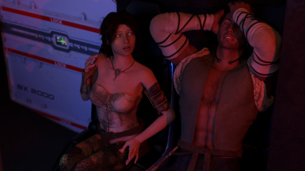 Tamah turns away, flustered and blushing in response to Mehetabel’s projected emotional and verbal innuendo. Tamah has not attempted to hide her attraction to Rihas, so Mehatabel is perfectly aware of the dynamic she is working to foster with the nomad leader. Her heart sinks at a spontaneous bout of realization. If Rihas is an empath, he has sensed it as well.